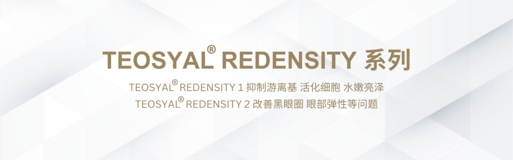 随着年龄增长,皮肤出现的干燥、失去弹性和细纹是常见问题。为针对这些皮肤问题,TEOSYAL® REDENSITY 系列包括:TEOSYAL® REDENSITY 1 利用其独特配方,即时为肌肤注入肌肤所需营养,从肌底改善肤质,修复和滋润皮肤,同时增强光泽,对抗老化迹象。 TEOSYAL® REDENSITY 2以透明质酸,针对皮肤深层,改善黑眼圈、眼部弹性等问题,同时填平了泪沟凹陷,改善阴影型黑眼圈,淡化眼周细纹!